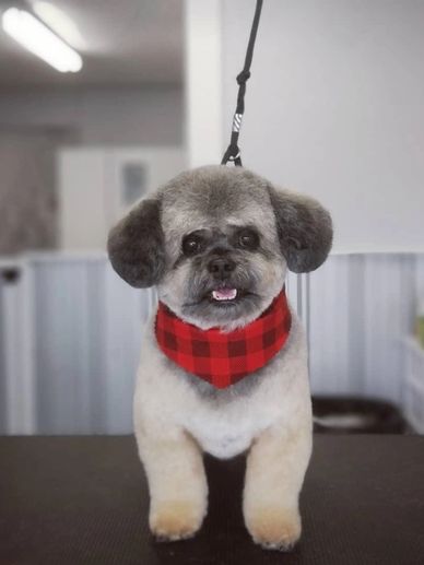 Hi Corinne These photo's were taken after Oskar's bath today. He loved his bath and brushing - no hair dryer required, he dried laying in the sun on the lounge chair. It's a dogs life! Yes, gotta get the face trimmed - lol Regards Karen