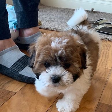 Lilly is absolutely amazing! I cant say enough good things about her! She is so sweet and gentle, but has the right amount of "crazy" when she's tearing around the backyard, running so incredibly fast!!! It makes us laugh so hard! She loves playing fetch both inside and outside the house. She makes us smile and laugh every single day! She's been so easy to take care of... She has the run of the kitchen when we're not home, but I've never come home to any crazy surprises that I've heard about from other puppy owners...no upturned garbage cans, or chewed up table legs, or cupboard contents emptied out and half eaten. She's been SO good! And being litter box trained when she first came home was incredible! THAT made it so easy to have a new puppy! My friends and coworkers couldn't believe it when I told them. And she truly doesn't shed. It's amazing. She's the perfect little dog! Thank you so much!
