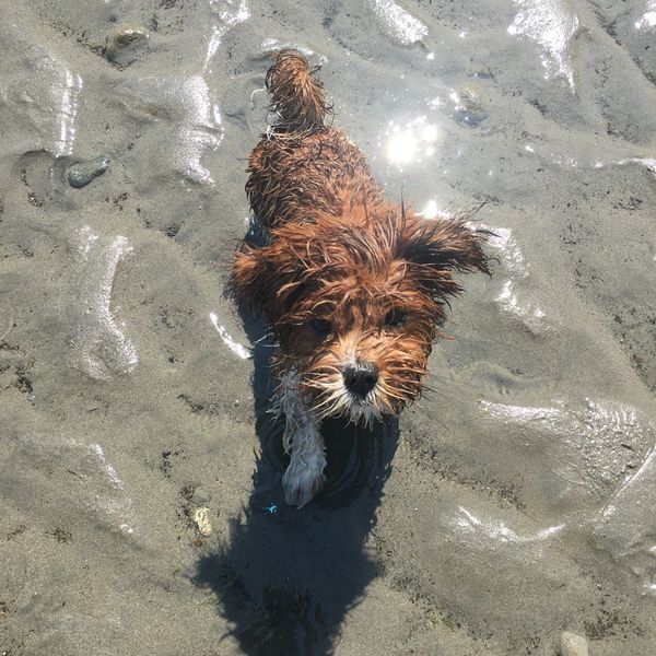 Here is Bailey at 4 months old, she is such an awesome little dog, she has fit so well into our life style.... She loves to swim and walk along the waters edge...we have been on our boat for 5 weeks and she is fully trained to go on a mat, she rings a bell to be let out to go potty....she fetches and does a high 5 with her paw....she learns so fast, just with lots of praise that she is a good girl and lots of loves and pets....every where we go she is just loved by all.